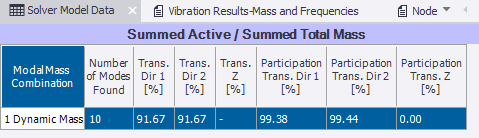 After running a 1st order modal analysis, modal masses for each mode are available in the Modal frequencies table.