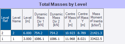 In this table the dynamic mass, center of mass coordinates, and mass moment of inertia are reported for each level that has been set as a “Floor”.
