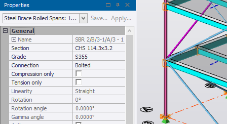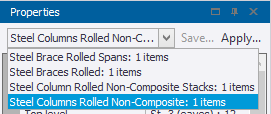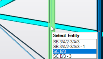 If a continuous beam and its constituent spans are selected, they can all be deselected with a single mouse-click while holding down the Ctrl key. The same method can be applied to a continuous column and its constituent stacks, or a wall and its constituent panels. |