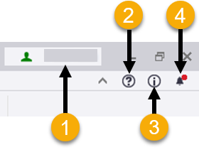 The icons for Sign in (1), Help (2), About (3), and Notifications (4) are located at the top right of the ribbon, as shown below.