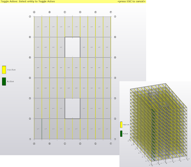 Single span members can be made inactive for analysis and design while still being kept in the model for load distribution, and because they still act as restraints, for determination of effective lengths.