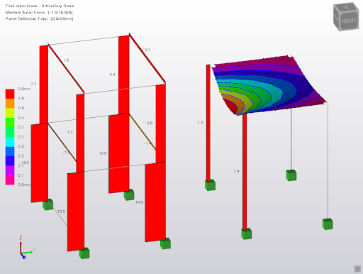 In the second view the purlins and rails have been set inactive, providing a clearer display and showing the values the engineer would expect/assume from such a combination.