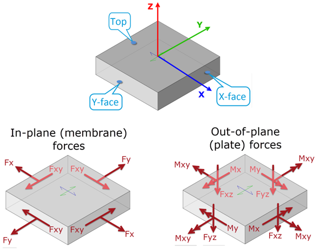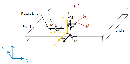 - Out-of-plane shear (Fxz and Fyz) is positive when shear is such that moment is increasing in the positive X or Y direction.