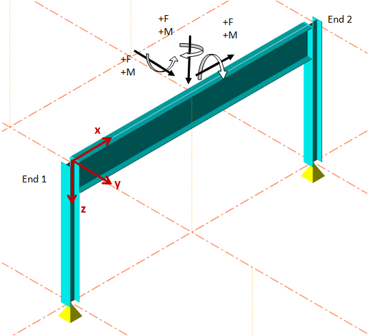 - The local x axis along member starts at end 1 and ends at end 2