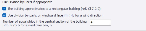 Previously ‘Division by Parts’, as described in BS EN 1991-1-4:2005, Clause 7.2.2 (1) and Figure 7.4, was not catered for in Tekla Structural Designer.