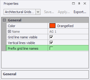 A new Prefix grid line names property has been added to the Properties Window for Architectural Grids.
