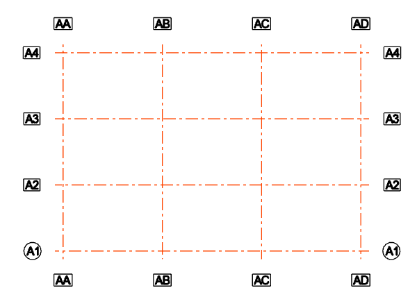 Example: An Architectural Grid is named "A" and "Prefix grid line names" is on.