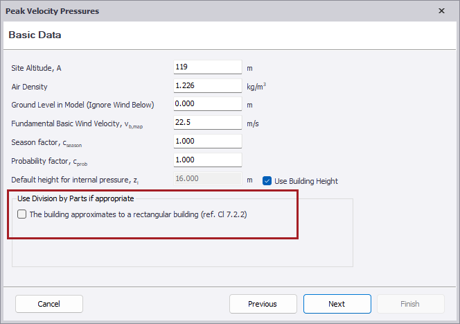 An option has been added to the Basic Data page of the Wind Wizard to allow you to confirm if division by parts is appropriate.