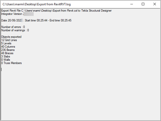 Once the processing of the CXL file has been completed, a log file will be shown. The log file is simply a text file recording the objects exported, deleted or altered along with any warnings encountered.