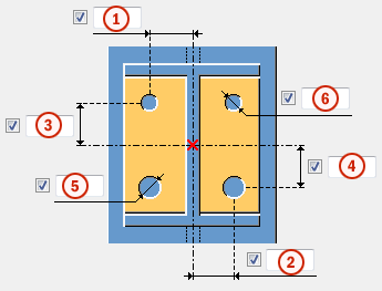The center of a hole group is the middle point of the beam and the middle point of the haunch, if the haunch exists. The hole groups are composed of 0, 1, 2 or 4 holes.