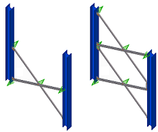 Select whether connections are created between the bracing elements. No: Only the bracing elements are created. Yes: Components are added between the bracing elements. |