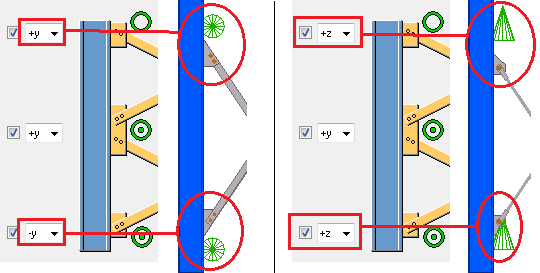 Select the offset of the first and the second bracing element from the reference points. This option is useful when the bracing elements are positioned so that the first bracing is alongside the second bracing. Typically, the first bracing element is set to Forwards and the second bracing element to Backwards. |
