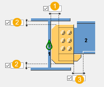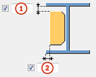 Gap between the secondary part bottom flange and the main part. Tekla Structures adds the value you enter here to the gap you enter on the Picture tab. |