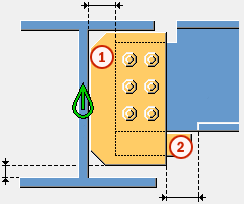 Clipped flange Cuts the corner of the flange at the end of the secondary beam. |