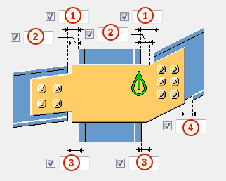 Gap between the secondary part web and the main part. Tekla Structures adds the value you enter here to the gap you enter on the Picture tab. |