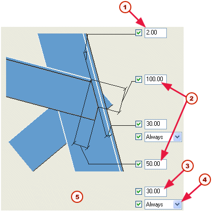 These tab pages contain options to cut the legs of the braces, and the dimensions of the cut. This is how they appear on the Parts tab: