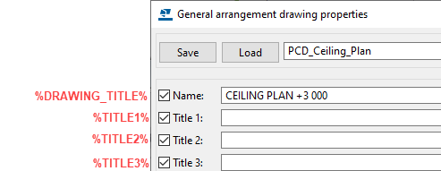 the drawing properties dialog box. If you enter %TITLE1%, %TITLE2%, or