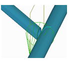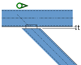No new parts are created. The secondary part is adapted to the main part using a fitting and two line cuts. Use dimension d to define the distance to the center of the main part. Use dimension t to define the gap between the plate and the main part. |