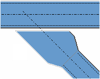 No new parts are created. The secondary part is adapted to the main part using a fitting and a line cut. Use dimension c to define an offset from the centerline of the main part (default value = 15 mm). Use dimension t to define the gap between the plate and the main part. |