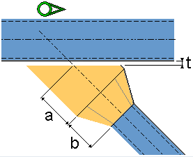 Use dimensions a and b to define the plate length. The widening starts at the squeezed part and continues along the contour plate. Use dimension t to define the gap between the plate and the main part. |