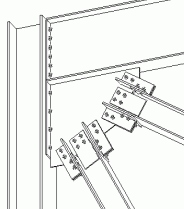 Brace profile: W Gusset plate is welded to an extended end plate. Braces are bolted to the gusset plate using clip angles on the flanges. |