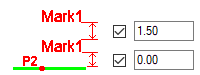 When Mark 1 and Mark 2 have no text, the extra line length setting on the Mark 3 tab is activated. Specify the length of the line. |