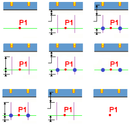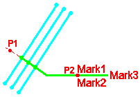 Define the shape of the rebar mark. In the descriptive option images, P1 is the first point that you pick and P2 the second one. Mark x indicates the locations of the marks defined on the Mark 1–Mark 3 tabs. The options are: Option 1: