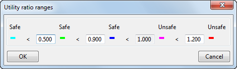 - Set the ranges of ratio for each of the colors that Tekla Structures uses to show safe and unsafe parts.