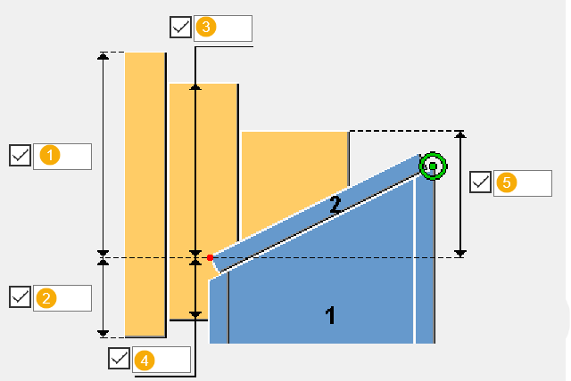 Horizontal distance of the top or bottom node of the inner or outer profile from either the face of the middle profile or the main reference point if there is no middle profile. |