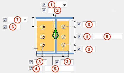 Bolt spacing. Use a space to separate bolt spacing values. Enter a value for each space between bolts. For example, if there are 3 bolts, enter 2 values. |