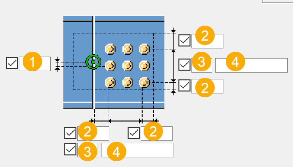 Bolt spacing. Use a space to separate bolt spacing values. Enter a value for each space between bolts. For example, if there are 3 bolts, enter 2 values. |