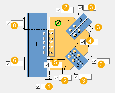 Bolt spacing. Use a space to separate bolt spacing values. Enter a value for each space between bolts. For example, if there are 3 bolts, enter 2 values. |