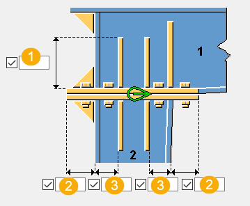 Bolt spacing. Use a space to separate bolt spacing values. Enter a value for each space between bolts. For example, if there are 3 bolts, enter 2 values. |