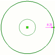 Tekla Structures creates a new circle that is centered in the same location as the original circle, and adjusts the radius by the offset that you specified.