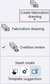 This is how the ribbon dropdown menu looks by default with the Create fabrication drawing command, the Creation review checkbox, and the Smart create switches: