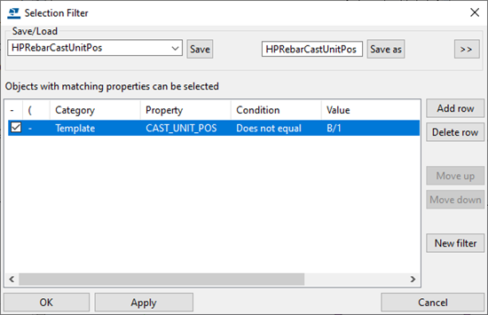 In the following example, you do not want to delete marks from cast units with a position number B/1. This means that when you use this filter, activate the