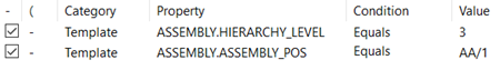 ASSEMBLY.HIERARCHY_LEVELas Property, select Equal, and define the desired assembly level as the value. -