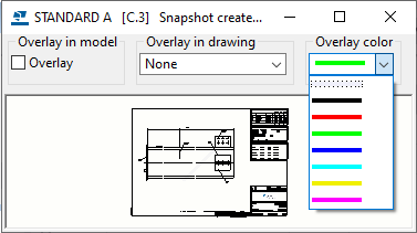 - At the top of the displayed snapshot dialog box, under Overlay in model, select the Overlay check box. You can also select a color for the snapshot.