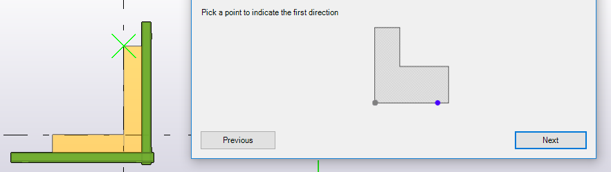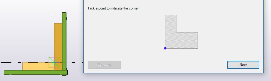 This point will be placed exactly to the external or to the internal corner of the concrete in the wall in the final condition placement. Note that after you have picked the point, the wizard steps forward automatically. You can step back to re-pick a new point.