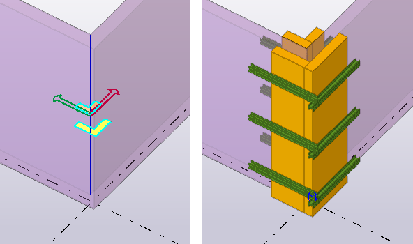 Before you can start creating the corner sub-assemblies, you need to have an external or inner corner formwork in the model. When you have created the corner formwork, you can start the wizard.