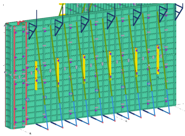 Formwork placing tools - Walls is a set of components that helps in detailed modeling of different wall panel formwork systems. These components are placing tools, and therefore you need to have all relevant formwork products such as wall panels, corner conditions, clamps, and pouring platforms available in the Applications & components catalog.