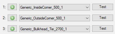 The condition can have 2-5 sub-conditions, depending on the condition type. One condition must have at least one sub-condition defined as otherwise it does not create anything. Click Click the Test button to verify the output of the selected sub-assembly. To test the sub-assembly, pick a point in the model. The tool creates a sample wall and the sub-conditions with right side and left side placement. After you have done the testing, you can delete model objects that were created for testing purposes. |