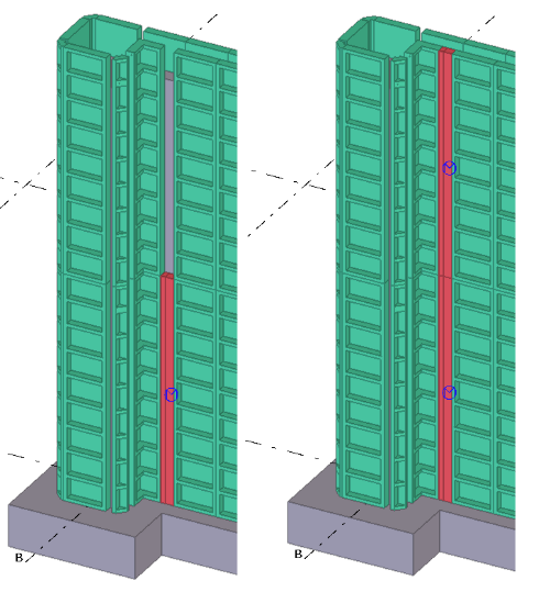 Use the Panel tab to model an array of formwork panels on one side or on two sides of a cast-in-place wall.