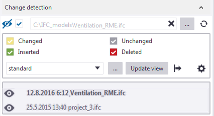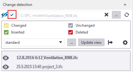 You can show changes between two stored reference model versions or between stored version and browsed reference model file version. In both of these cases you need to activate change detection: