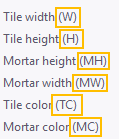 Color of the tile or mortar, defined by the RGB values (0–255). Optional. |