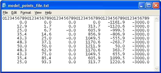 The ASCII file for the coordinates of the points has a specific structure. A pair of coordinates is defined on each row with x-, y- and z-values.