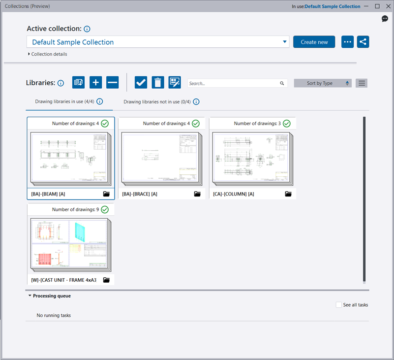 For details on working with collections, see “Manage fabrication drawing collections and libraries”.