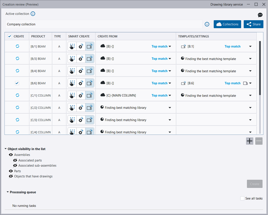 . - Click Create to create the drawings. AI looks for the best matching drawings (drawing