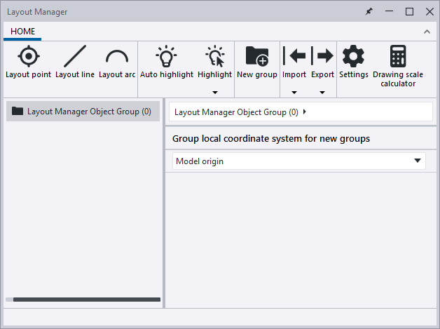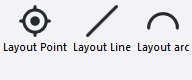 You can now create layout points, layout lines, and layout arcs using the commands in the Layout manager dialog. The command buttons on the Layout manager ribbon open the dialogs where you can define the properties.
