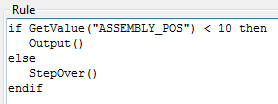 < | Left side is smaller | This rule finds all rows with the assembly position that is less than 10, anything equal to or greater than 10 is skipped.